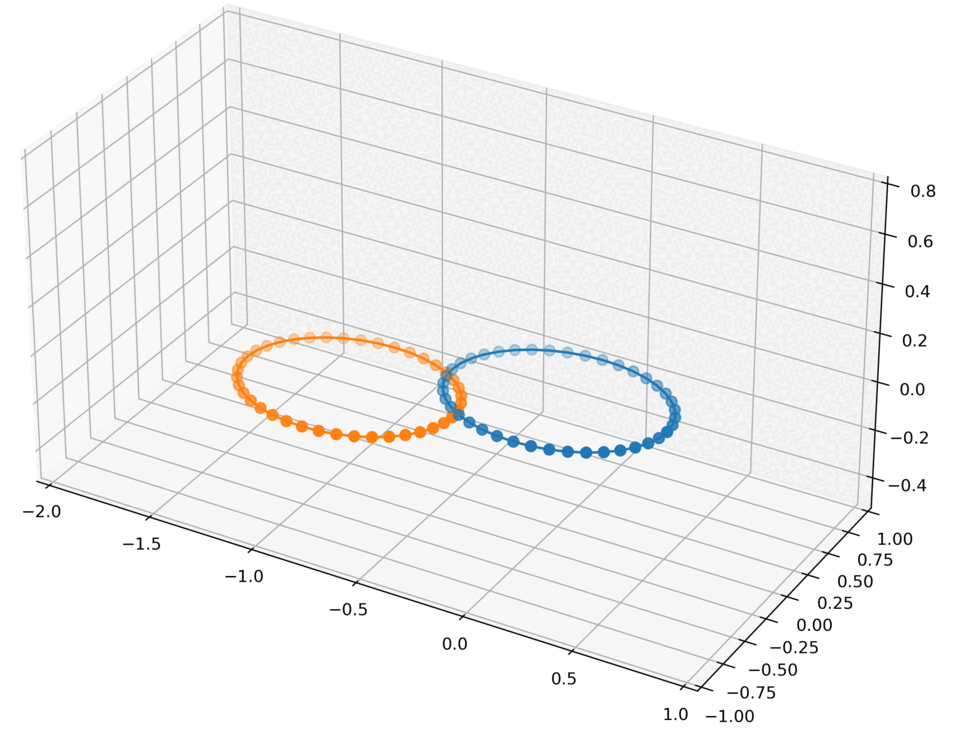 The above Python simulation shows our investigation into implementing reconnection of the bubble rings. Initially, the two bubble rings are attracted to each other, and they merge. Afterward, they separate into two rings. Unfortunately, we were unable to implement this reconnection feature into our rendered simulation in C++ within our time constraints.