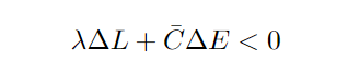 The reconnection criterion is given by the equation above, where λ is the length energy factor, ΔL is the difference between the distances of the new reconnection segments and the old segments, C is the mean circulation of the four corner vertices, and ΔE is an energy associated with δ. This energy is given by a flux of the velocity field generated by the two rings through the reconnected ring and is detailed in Appendix A of Weissmann and Pinkall, 2010. This criterion also applies for splitting, which is the opposite direction of the diagram above.