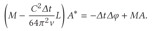 The equations of motion eventually collapse into a first order differential equation for the velocity at each vertex for curve γ given by Eq. 18 in Padilla et al., 2019 shown above in a modified form. Circulation C, Atwood number At = -1, kinematic viscosity ν = 1e-6 m2/s are given, and a is the thickness associated with a vertex. The velocity of vertex vi is computed in three parts: Biot-Savart velocity, localized induction, and Boussinesq term indicated in the equation as Term 1, Term 2, and Term 3 respectively.